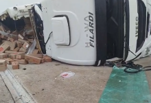 Volcó un camión con productos Swift en la rotonda de Ruta 8 y hubo personas que intentaron llevarse mercadería
