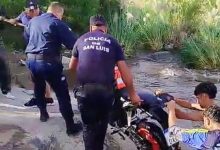 San Francisco del Monte de Oro: motociclista cayó al río al intentar cruzar un badén crecido