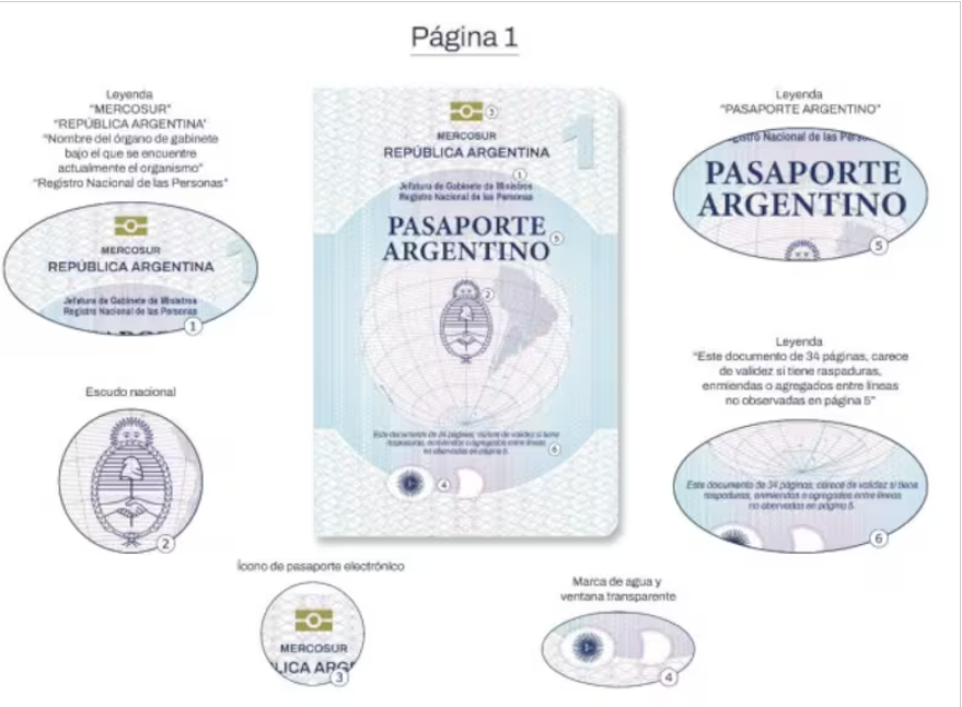 El nuevo pasaporte contará con 34 páginas, de las cuales las dos primeras estarán fabricadas en policarbonato, un material de alta resistencia utilizado en documentos de última generación. Los datos personales del titular estarán grabados con tecnología láser, lo que dificulta su adulteración.