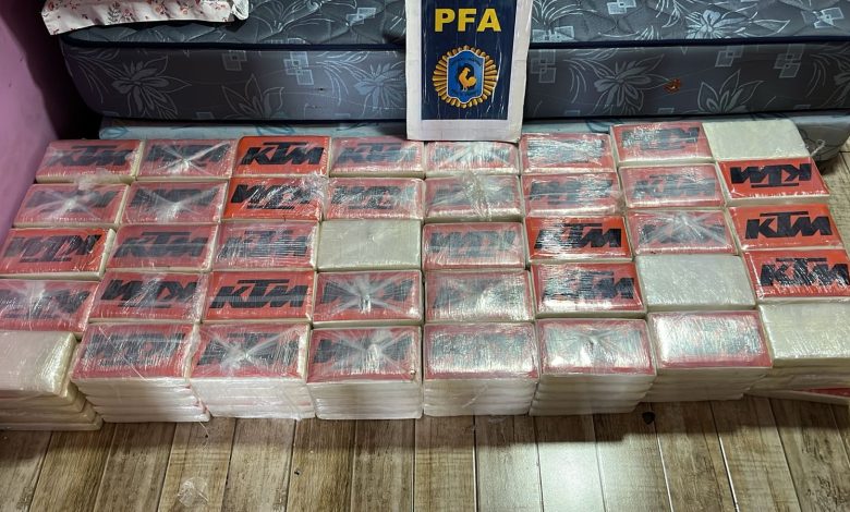 - Cocaína en “ladrillos”: 260 paquetes con sello “KTM”.