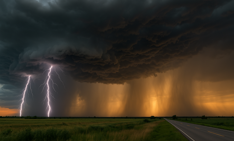 - Ráfagas intensas, probabilidad de granizo y abundante caída de agua en períodos cortos.