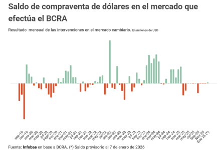 Durante la rueda se operaron USD 438,5 millones en el segmento de contado. El BCRA volvió a comprar divisas, aunque por un monto reducido: USD 9 millones, equivalente al 2% del volumen negociado, por debajo del límite diario del 5% que la autoridad monetaria se había fijado como referencia. Con esta operatoria, las compras acumuladas de la semana ascienden a USD 113 millones.