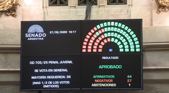 Tras un extenso y tenso debate, el Senado de la Nación aprobó el nuevo Régimen Penal Juvenil y estableció la baja de la edad de imputabilidad de 16 a 14 años. La iniciativa fue sancionada con 44 votos a favor, 27 en contra y una abstención.