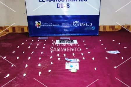 En el marco de la denominada “Misión Sarmiento”, la Policía de San Luis llevó adelante este martes 24 de febrero una serie de allanamientos en Villa Mercedes que culminaron con la anulación de dos centros de venta y distribución de drogas, el secuestro de cocaína valuada en casi 2 millones de pesos y la detención de dos personas.