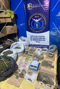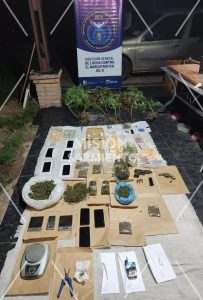 Durante los allanamientos, los investigadores incautaron una importante cantidad de drogas y elementos vinculados a la comercialización. Entre lo secuestrado se encuentran florescencias de marihuana, envoltorios con cocaína, semillas y plantas de cannabis, además de hongos en estado de descomposición.