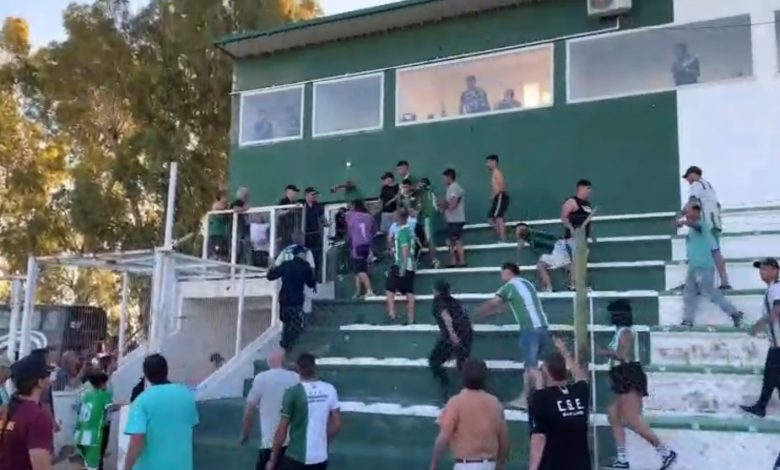 Según informaron fuentes policiales, un grupo de unas veinte personas comenzó a arrojar piedras hacia el interior del campo de juego. Al intentar dispersar a los agresores, los efectivos fueron atacados, resultando lesionado un comisario, quien sufrió un corte en el labio interno y radicó la denuncia correspondiente.