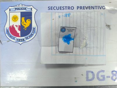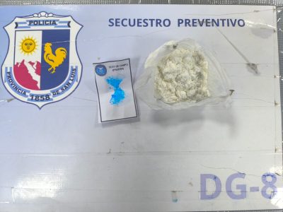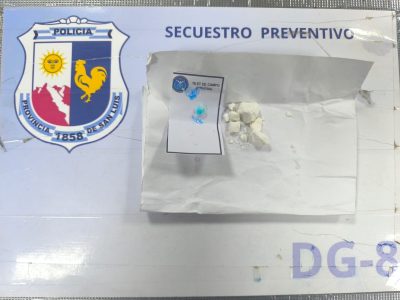 Durante el mismo procedimiento, personal de Lucha Contra el Narcotráfico incautó 25 gramos de cocaína, distribuidos en tres envoltorios de papel que el sujeto llevaba entre sus pertenencias.