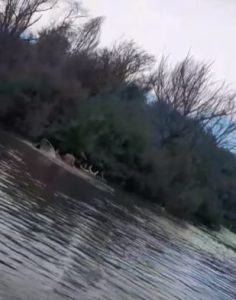 Las tareas se desarrollan en un contexto complejo debido al alto caudal del río, que arrastra ramas, residuos y otros elementos, lo que dificulta la visibilidad y el trabajo en el agua.