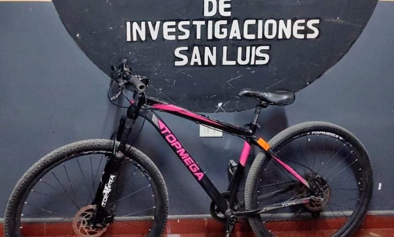 Una investigación iniciada tras la denuncia de un vecino permitió a la Policía de San Luis recuperar una bicicleta que había sido sustraída durante la madrugada en el barrio Eva Perón. El rodado fue localizado luego de ser ofrecido a la venta en redes sociales.