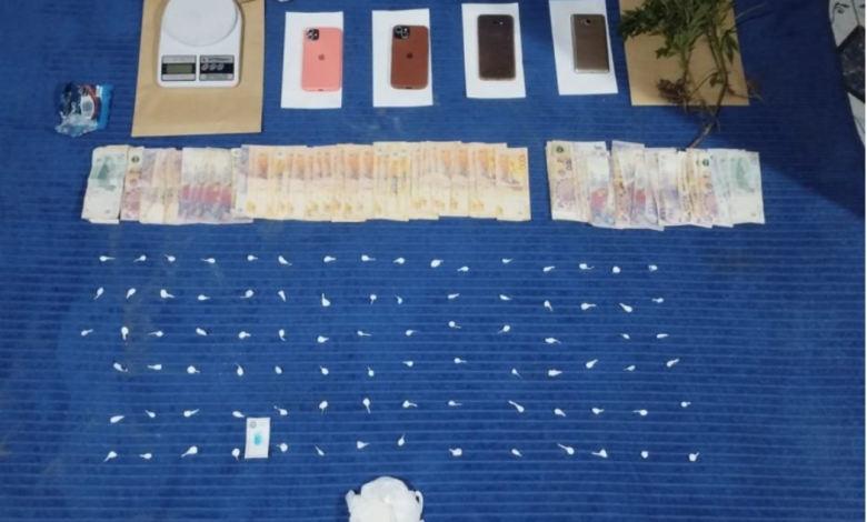 El primer operativo tuvo lugar en una vivienda de la manzana 64. En el lugar, los efectivos secuestraron envoltorios de nylon con cocaína lista para su fraccionamiento, suficiente para elaborar 92 dosis, valuadas en aproximadamente 460 mil pesos. Además, se incautaron cinco teléfonos celulares y 6.580 pesos en efectivo. Por el hecho, quedaron detenidos e incomunicados una mujer de 46 años y un joven de 19.