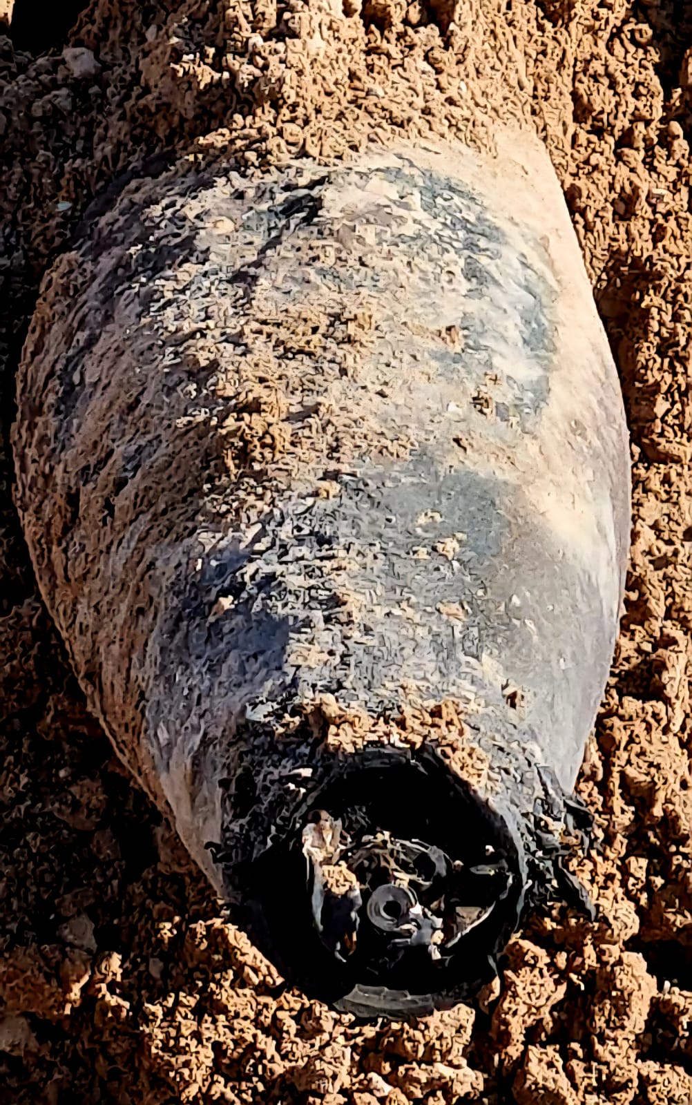 Debido al alto nivel de oxidación del proyectil y a los riesgos de su traslado, se decidió su destrucción controlada en el mismo lugar del hallazgo.