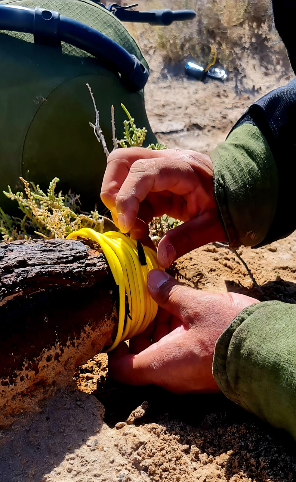 Sin embargo, por precaución, se aplicó una segunda carga de corte sobre el tapón de seguridad para descartar la presencia de una espoleta invertida.