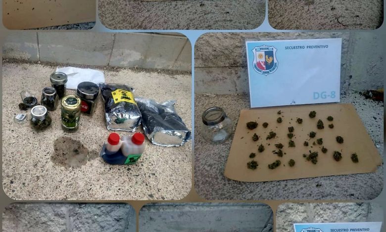 Como resultado, se procedió al secuestro de seis frascos de vidrio que contenían 68 flores de cannabis, con un peso aproximado de 82 gramos. De acuerdo a las estimaciones oficiales, la sustancia incautada sería suficiente para la elaboración de unas 246 dosis, con un valor estimado en el mercado ilegal que supera los 700 mil pesos.
