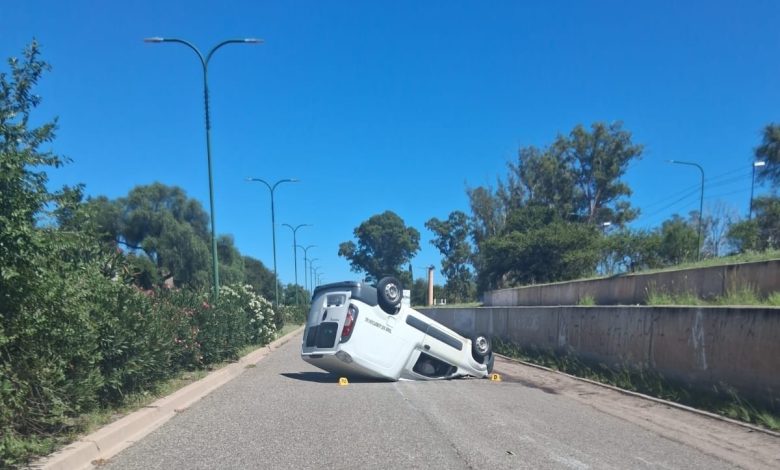 Un accidente de tránsito se registró este lunes 2 de febrero por la mañana en la ciudad de San Luis, cuando una furgoneta volcó sobre la avenida Eva Perón (ex Corredor Vial), a la altura del Parque de las Naciones.