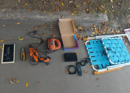 Durante la identificación, los uniformados constataron que llevaba una reposera y una bolsa que contenía una sierra caladora, un taladro, herramientas de mano, un decodificador y otros objetos.