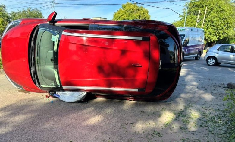 Villa Mercedes: un vehículo volcó tras chocar con otro automóvil; no hubo personas heridas