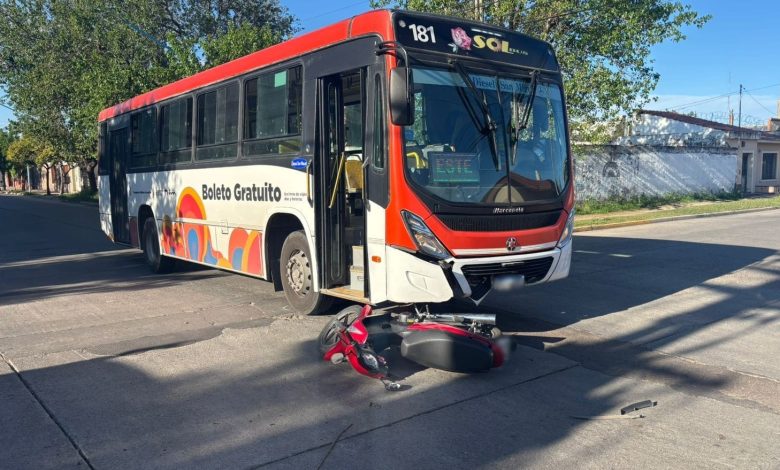 En el lugar colisionaron un colectivo Mercedes Benz de transporte urbano de pasajeros, conducido por un hombre de 39 años, y una motocicleta Keller 110 cc, al mando de una adolescente de 16 años.